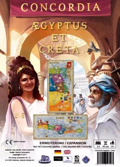 Concordia: Aegyptus / Creta is an expansion for Concordia that contains two maps for new strategic challenges: