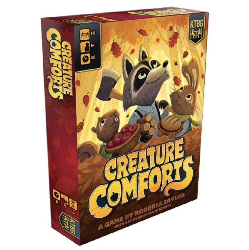 In Creature Comforts, you spend the Spring, Summer, and Fall gathering different goods from the forest and spending them to collect items that will make your home more inviting while the world outside is covered in a layer of snow. Each round you send family members out to various locations in an attempt to gain supplies. If they fall short of their goal, they’ll learn a lesson and be better prepared next time. The family that has created the most comfortable den wins the game.