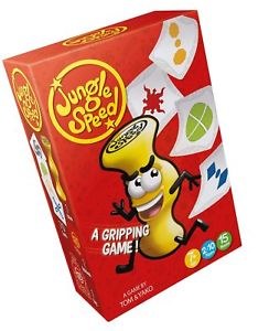 In Jungle Speed, you must rely on your keen sense of observation and quick reflexes. It requires a steady hand -- which can be hard to maintain during the many fits of maniacal laughter! The wooden Totem sits in the middle of the table, waiting for the player with the fastest reflexes to snatch it up and win the game.