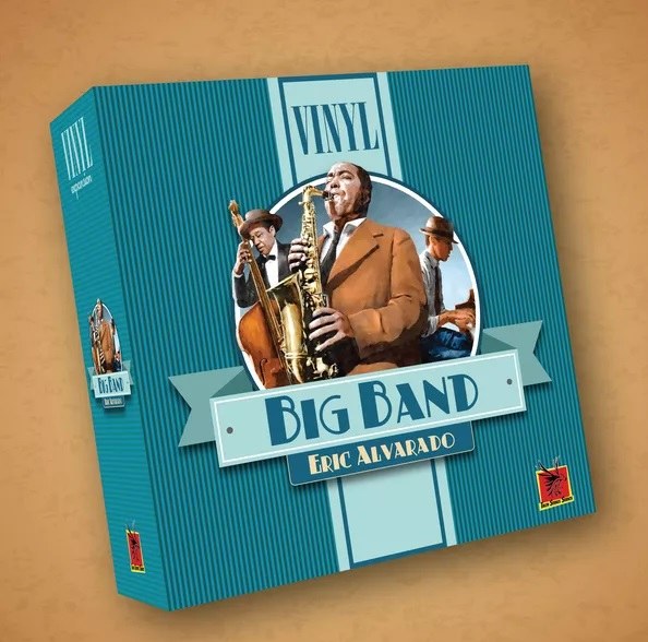 Big Band is a Vinyl stand-alone game that continues to build on the base game of Vinyl and introduces the Window Display, Leader Board, and a new way to form collections. Historically, 78s and 33s were competing formats and available to purchase in the record store. In BB, players will focus on collecting albums from two genres -- Swing and Jazz. Players will acquire albums in two different speeds from up to 8 different band leaders. With respect to speeds, there are benefits in collecting 78s since they are worth slightly more than the 33s. However, the 33s offer collection powers to entice players to collect them instead. Furthermore, the rules for collecting albums are stripped down to just matching the genres. However, players must visit the front counter in order to earn collection rewards. To turn in a collection, the player must represent each of the four instruments in one genre. Depending on how many matches there are in the attributes will dictate what type of collection reward they will earn. Play continues until all the albums have been placed into the store. The player with the most points, in the end, is the winner.