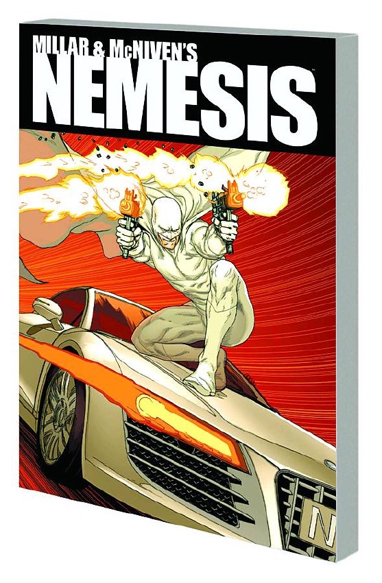 The writer and artist behind CIVIL WAR and OLD MAN LOGAN return with a tale of one man with a plan for vengeance! Who is Nemesis? He is a son of privilege, an inheritor of billions from his deceased parents. He owns a fleet of the finest cars and a hangar full of planes, and has countless technological gadgets at his command. Donning a mask and long flowing cape, he's a man in white fighting relentlessly for a cause in which he believes. But if you're thinking Mark Millar (KICK-ASS, Wanted) and Steve McNiven (CIVIL WAR) are telling a story you've already heard before, think again: You'll know you've got something completely different by the turn of the first page. Nemesis tracks the violent fantasies come to life of the villain to top all villains in an in-your-face, unapologetic tour-de-force of action, ultraviolence and over-the-top humor!