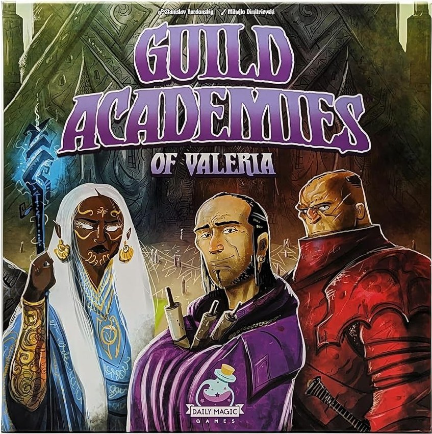 GAOV uses action selection, dice drafting and dice manipulation (Students), tile drafting, resource management and engine building (Academies), contract fulfillment (Quests), and a unique system where players choose which game aspects they want to score (Council Ministers) to bring a new aspect of the Valeria Universe to life.