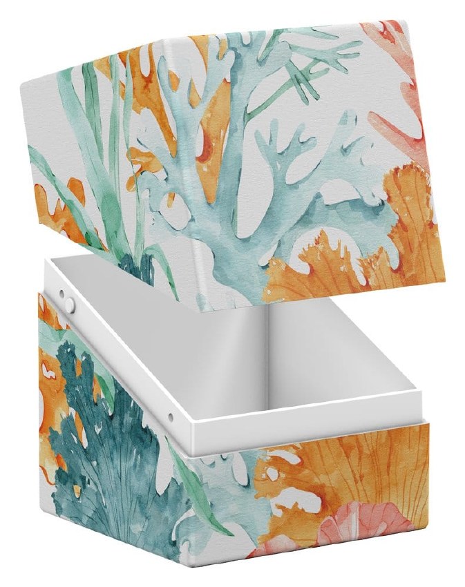 Ultimate Guard's RTE Boulder 100+ from the "Coral Places" series is a durable and reliable TCG deck box made in Germany from 78% renewable resources. Despite its secure closure, the RTE Boulder 100+ is easy and convenient to open and holds 100 double-sleeved cards in Ultimate Guard sleeves*, making it the ideal deck box for trading card games like Magic: The Gathering, Pokémon, Lorcana, Flesh and Blood, Yu-Gi-Oh!, Riftbound, or One Piece. The deck box features a vibrant, full-color print and comes in eco-friendly packaging made from 100% recycled and further recyclable materials. Designed to combine with all Ultimate Guard mass storage boxes, Boulders fit especially well into Arkhive, Superhive, and Flip'n'Tray boxes.