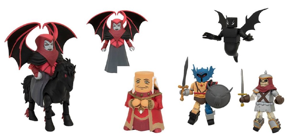 A Diamond Select Toys release! Diamond Select Toys returns to the animated world of the D&D cartoon of the 1980s with an all-new deluxe box set of 2-inch Minimates! This new set includes an array of villains: Venger, Warduke, Dekkion the Skeleton Warrior, a Shadow Demon, and Night-Mare, Venger's horse that he can really ride! Plus, get a figurine of the Dungeon-Master, with a removable ice crystal prison! Each Minimate features multiple points of articulation and character-specific accessories, and all parts are fully interchangeable! They come packaged in a full-color, book-styled window box with a fifth-panel cover. Designed and illustrated by Barry Bradfield!